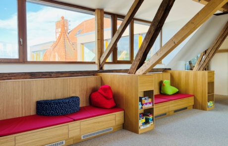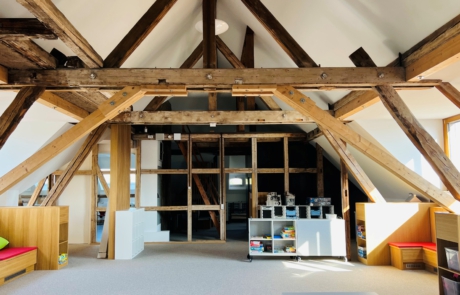 Nachmittags öffnen wir die Türen und heben Beschränkungen der Kinder auf bestimmte Räume auf. So haben sie die Möglichkeit nach ihren Interessen ein umfangreiches und vielfältiges Spiel- und Lernfeld zu nutzen.